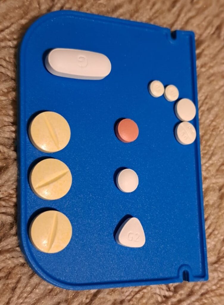 En als je dan ook nog de andere medicijnen er bij optelt, heb je een aardig medicijnkastje.